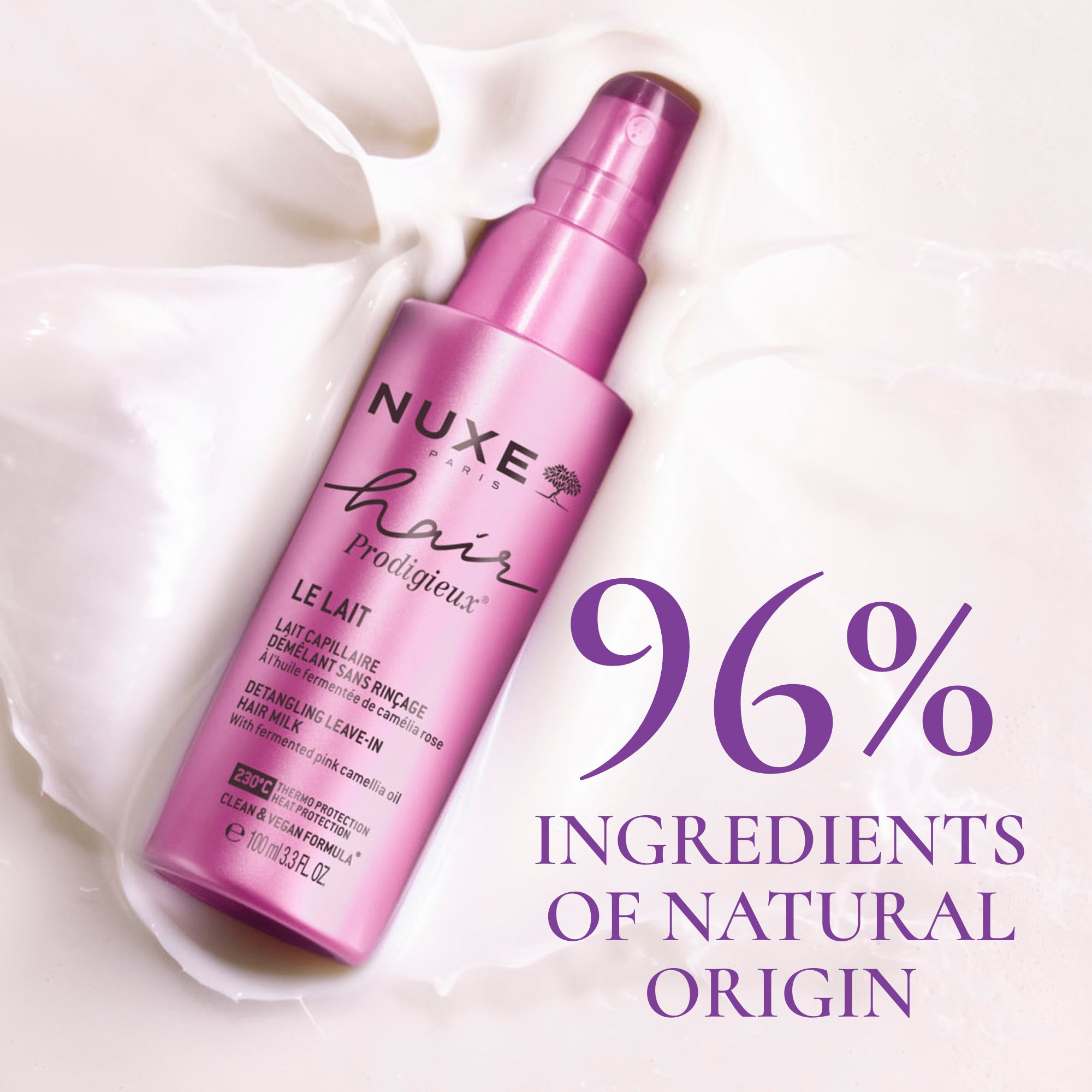 Succomb to the beautifying properties of fermented pink Camellia oil and the addictive fragrance of Huile Prodigieuse® for demanding hair. The Detangling Leave-In Hair Milk instantly detangles and infuses hair with moisture and softness, leaving it supple and light. This silicone-free milky treatment protects the hair from the heat of styling appliances up to 230°C/ 446°F. Your hair looks radiantly shiny and feels irresistibly soft and silky.