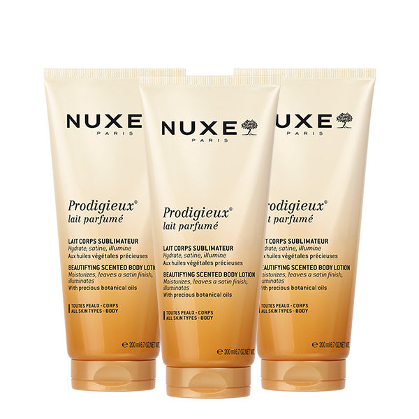 This Beautifying Body Lotion with precious botanical oils moisturizes and illuminates the skin, leaving a silky finish with the legendary, enchanting scent of Huile Prodigieuse®.